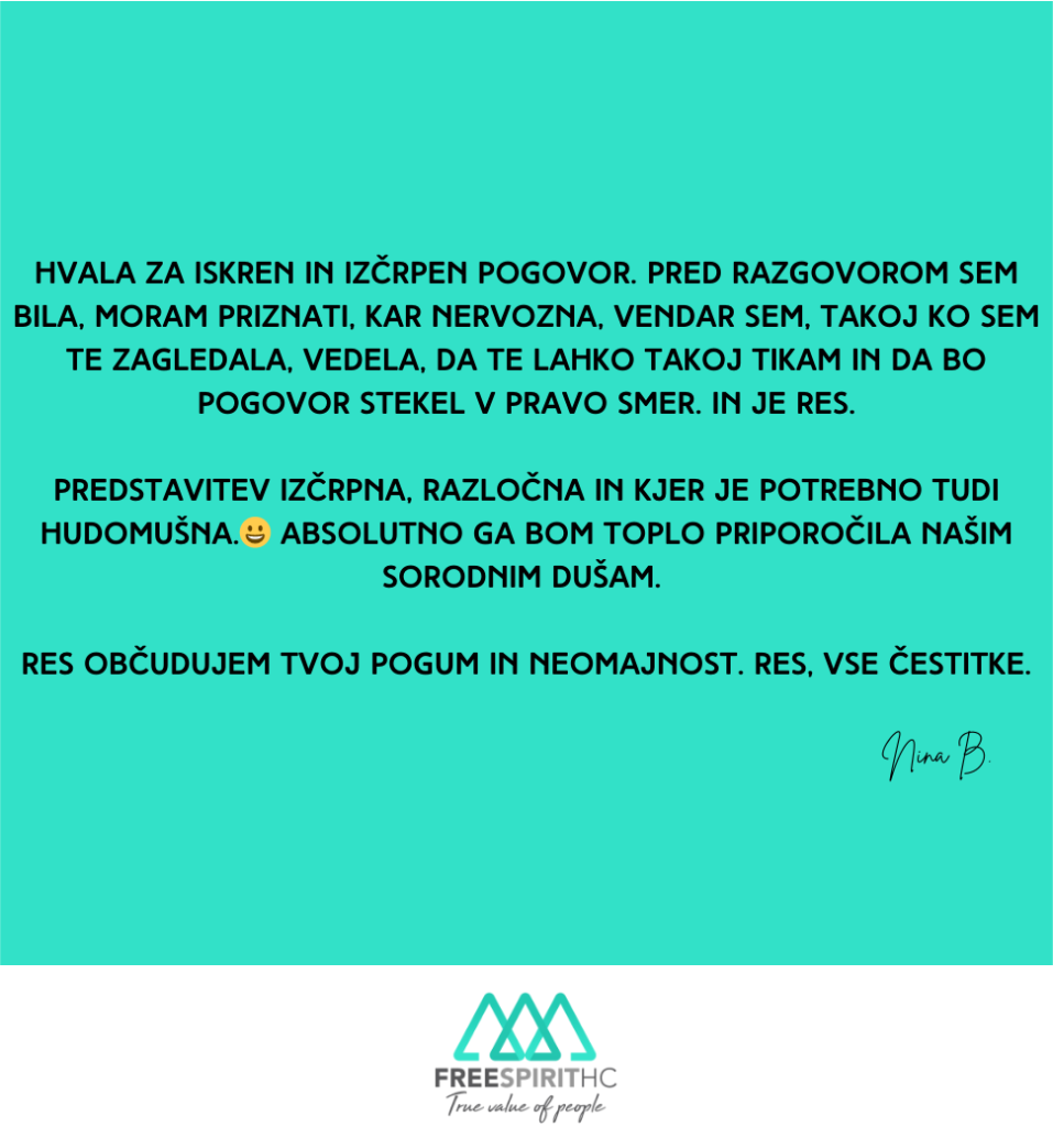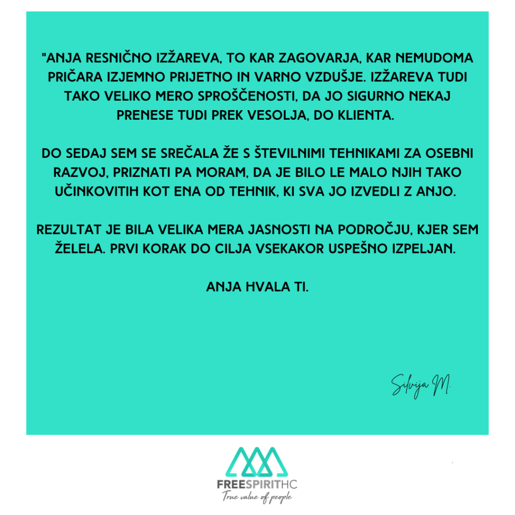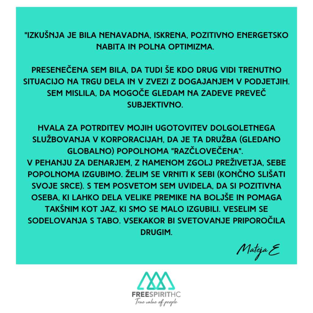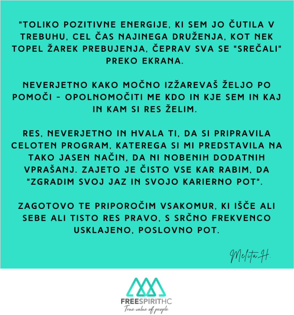Zato sem ustvarila Free Spirit HC – agencijo za opolnomočenje, povezovanje in energetsko prebujanje (dušnega) poslanstva.