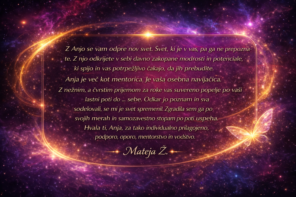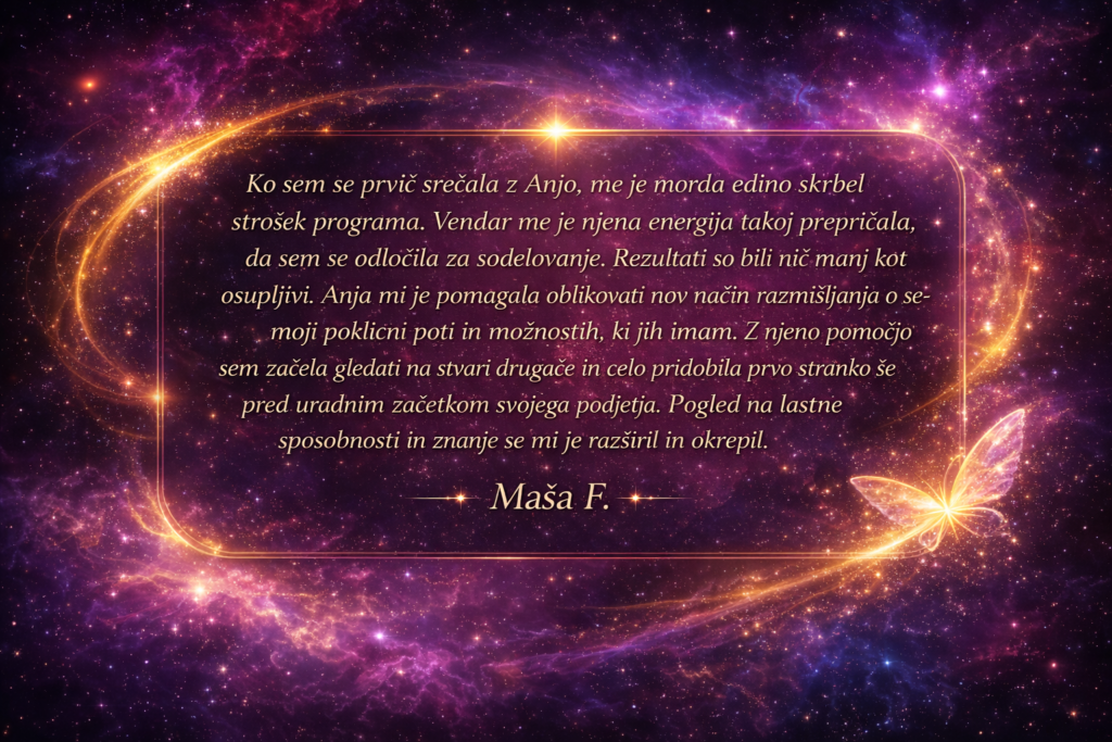 Ko je vse to “postavljeno”, postaneš naravna izbira za prave ljudi, prave projekte in prave priložnosti – tiste, ki so res usklajene s tvojim poslanstvom.